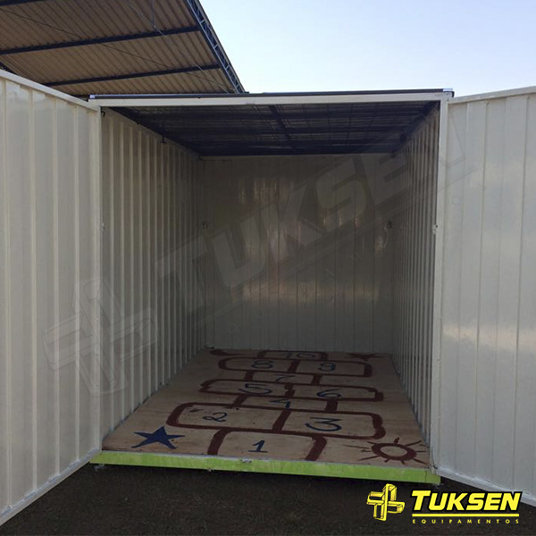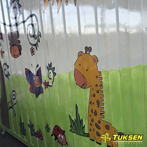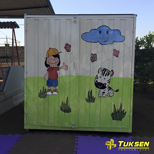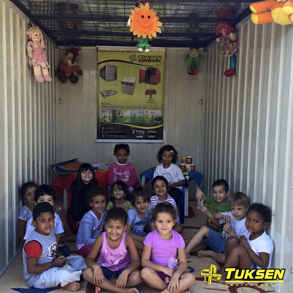 O Container Desmontável e Modular doado pela Tuksen Equipamentos foi personalizado pelos alunos e ganhou mesas, cadeiras, materiais para colorir e brinquedos.