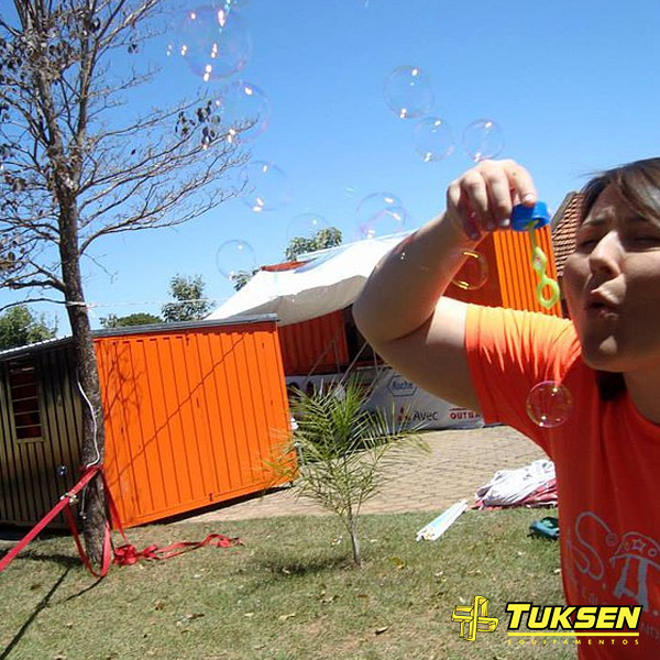 Com um Container Desmontável colorido de 8,00 x 3,00 x 2,10 m [CxLxA], os voluntários do projeto puderam desenvolver todo o cronograma com a facilidade de um Desmontável Tuksen.